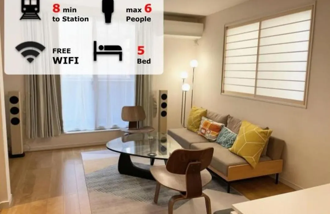 The 100 m² Tokyo Bauhaus Apartment offers proximity to such tourist attractions as Matsuyama-dori, situated nearly a 5-minute walk away. Wi-Fi and free private parking are also available at this spacious apartment.